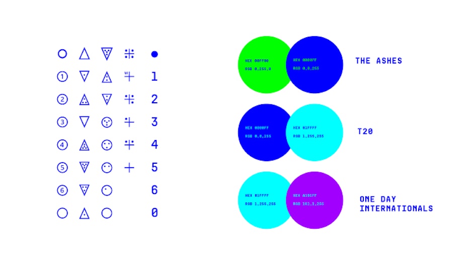 Để thu hút khán giả mới và khán giả truyền thống, Happy Ending đã tạo ra một nền tảng “DNA”, giống như mọi dự án, Popejoy nói. Tại đây, cơ quan này đã quyết định sử dụng hệ thống tính điểm môn cricket, với ngôn ngữ biểu tượng “khá phức tạp” – nhưng đồ họa hấp dẫn, làm “nền tảng” cho bản sắc mới.Anh ấy nói rằng việc kết hợp các biểu tượng xuyên suốt có nghĩa là “mọi người biết, biết hết về nó” và có thể cảm thấy được sự gần gũi ngay lập tức với chương trình, trong khi bản chất đồ họa của các biểu tượng – bao gồm hình tam giác, dấu chấm và chữ thập – có thể được chuyển đổi thành một thứ gì đó hơn thế nữa. thu hút người hâm mộ phi truyền thống thông qua “cách tạo hình hiện đại” của họ.