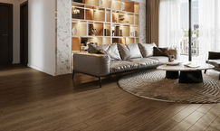 Với những không gian rộng lớn như biệt thự hoặc penthouse, sàn gỗ màu Óc chó (Walnut), Mun hoặc Đen than (Charcoal) là tuyên ngôn về sự quyền lực và sang trọng. Các mẫu sàn này tạo nên chiều sâu không gian và sự ấm cúng đặc biệt, biến sàn nhà thành một bức nền hoàn hảo cho các món đồ nội thất bằng da hoặc nhung cao cấp. Màu trầm cũng giúp che giấu tốt các khuyết điểm nhỏ và mang lại cảm giác bền bỉ, trường tồn theo thời gian.