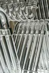Khu vực ngồi phía sau các cột trụ được định hình bởi những đường cong inox uốn lượn, tạo nên sự tương phản thú vị với các góc cạnh sắc sảo của quầy bar. Những đường cong này không chỉ mang tính thẩm mỹ mà còn tạo ra sự riêng tư tương đối cho khách hàng trong một không gian mở. Hình dáng tròn trịa của các dãy ghế gợi liên tưởng đến các cabin trong tàu vũ trụ, tăng cường cảm giác về một "trạm không gian" thực thụ.