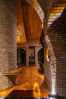 Toàn bộ Nhà Nắng là sự tôn vinh những vật liệu bền bỉ. Những viên gạch để trần không trát tạo nên vẻ đẹp thô mộc, trầm mặc. Đặc biệt, KTS đã tái sử dụng hoàn toàn nguồn gỗ cũ từ những ngôi nhà cổ, trao cho chúng một "cuộc đời mới" trong dáng hình của những món đồ nội thất đương đại nhưng vẫn đậm hơi thở ký ức.
