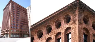 Tòa tháp Guaranty (nay là Prudential) tại Buffalo là một minh chứng khác cho việc phân chia công năng một cách khoa học theo chiều dọc. Sullivan chia tòa nhà thành bốn khu vực: tầng hầm cho kỹ thuật, tầng trệt cho thương mại, các tầng giữa cho văn phòng và tầng đỉnh cho thiết bị máy móc. Mặt tiền bằng đất nung của tòa nhà được trang trí tỉ mỉ đến mức người ta ví nó như một cái cây khổng lồ vươn lên từ lòng đất với những tán lá xòe rộng ở phần mái.