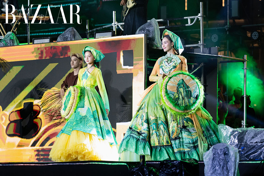 Điều đặc biệt, các mẫu trang phục này không mới hoàn toàn mà chính là những thiết kế từng gây tiếng vang tại các cuộc thi nhan sắc quốc tế. Việc đưa chúng trở lại sân khấu quốc gia vừa là sự tri ân thành quả sáng tạo, vừa khẳng định vai trò kết nối thế hệ: Nguyễn Minh Công không làm một mình, mà đồng hành cùng các NTK trẻ như Bùi Thế Bảo, Đặng Trần Trí, Lương Đức Minh — những cộng sự được anh cố vấn và truyền lửa.