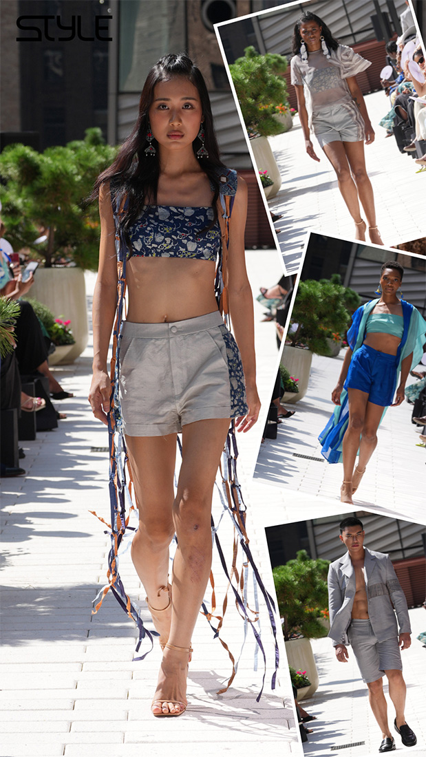 BST Eternal River, ra mắt tại Tuần lễ Thời trang New York, là minh chứng sống động cho triết lý này. Lấy cảm hứng từ các dòng sông gắn bó với tuổi thơ và hành trình của NTK – từ Hồng Hà, Aare đến Limmat – bộ sưu tập kể câu chuyện về sự sinh sôi, tái sinh và dòng chảy của cuộc sống. Mỗi trang phục như dòng nước mềm mại, uyển chuyển nhưng bền bỉ, với các chi tiết thủ công tinh xảo: lụa nhuộm tay, hoa văn sáp ong H’Mông, túi lục bình Nga Sơn, mũ lụa Ninh Bình và phụ kiện tái chế từ vải vụn.