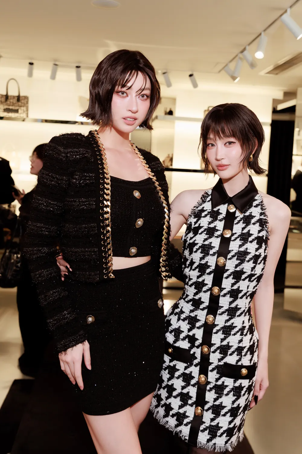 Khách mời còn được trải nghiệm triển lãm “Les Codes de l’Élégance Parisienne”, nơi trưng bày bản phác thảo gốc, kỹ nghệ thủ công, họa tiết Labyrinth, chi tiết mạ vàng và form dáng may đo couture. Các chi tiết biểu tượng như thắt lưng da bản to, áo khoác Balmain và họa tiết monogram PB được tái hiện, gợi nhớ di sản và tinh thần “New French Style” của Pierre Balmain.