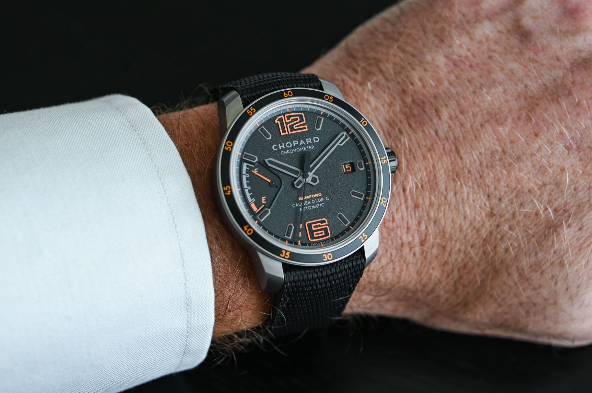 Nhờ sự hợp tác khắng khít giữa Đồng chủ tịch Chopard, Karl-Friedrich Scheufele và George Bamford – người sáng lập Bộ phận đồng hồ Bamford – 50 chiếc đồng hồ được đánh số tạo nên Mille Miglia GTS Power Control Bamford Edition 'Desert Racer'đã được sinh ra với sứ mệnh đồng hành cùng George Bamford trong cuộc đua National Off Road Racing Association. Chiếc đồng hồ đường kính 43 mm được làm bằng titan phun hạt, trên cùng là viền bezel chia độ bằng nhôm đen. Được thiết kế để đảm bảo vừa khít hoàn hảo trên cổ tay, vấu ngắn được sắp xếp hợp lý mang đến sự thoải mái tối ưu cùng với dây đeo tích hợp bằng cao su. Vỏ sau bắt vít đảm bảo khả năng chống nước ở độ sâu 100m được cố định bằng tám vít được xử lý PVD màu đen. Cỗ máy này vận hành bằng quả tim cơ học Chopard 01.08-C lên dây thủ công, hoạt động tốt trong 60 giờ liên tục.
