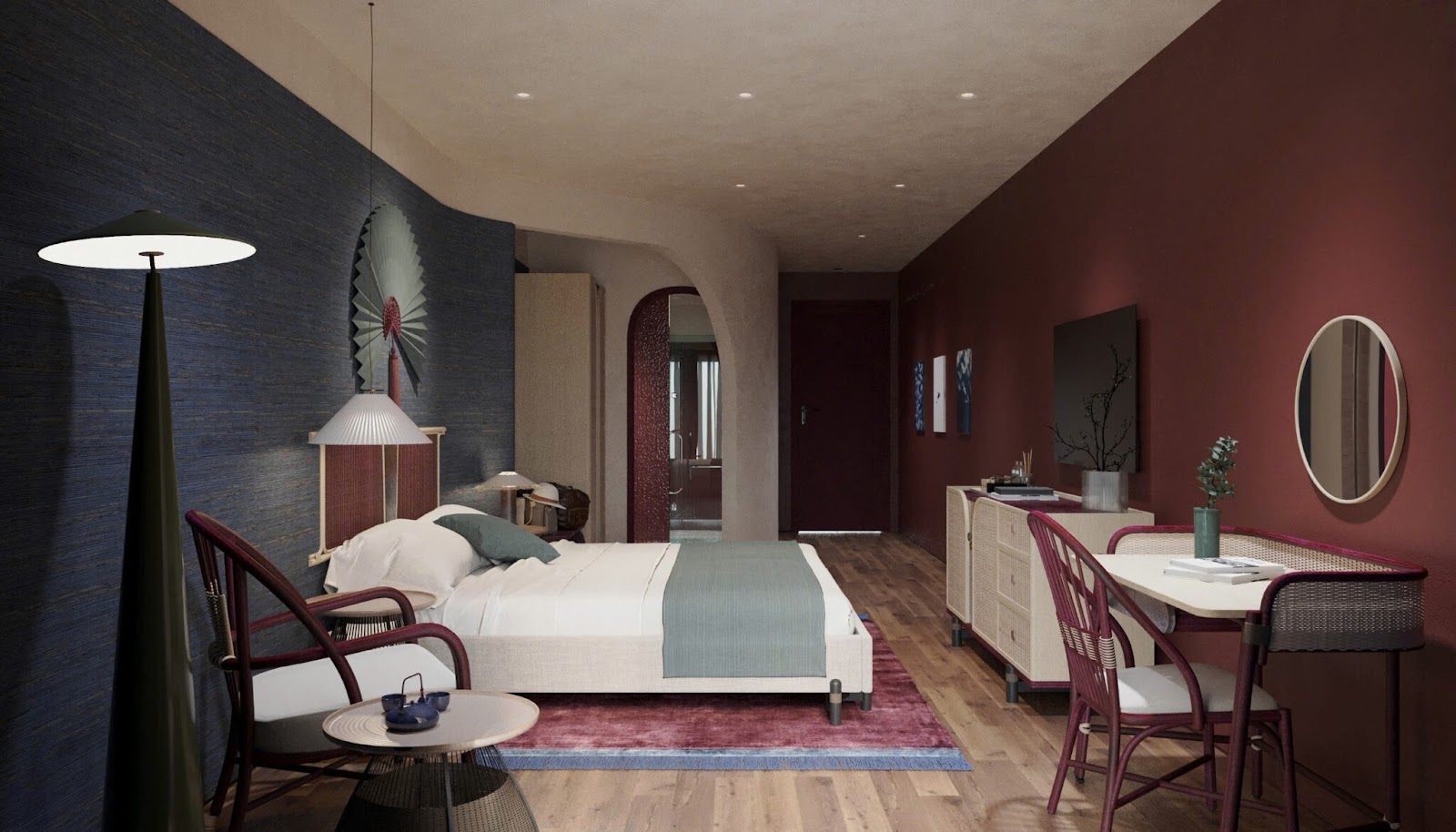 Khứu giác: Hương thơm tự nhiên từ gỗ, tre và sơn mài lan tỏa, gợi lên sự thư thái, an yên.