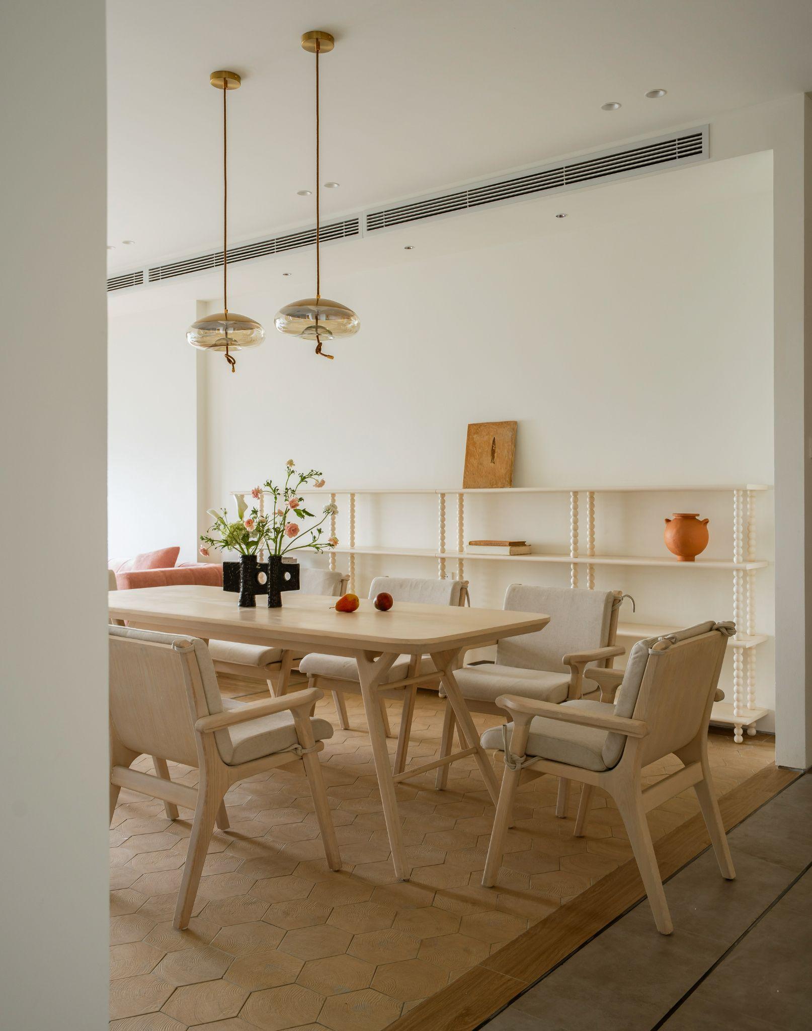 Tổ chức không gian BRG House thể hiện sự tinh tế trong phân chia chức năng và cảm xúc. Không gian sinh hoạt chung mở rộng với gam màu ấm và chất liệu tự nhiên để tạo sự kết nối, trong khi những khu vực riêng tư như phòng ngủ và phòng làm việc sử dụng gam màu sâu hơn và vật liệu mềm hơn để tạo cảm giác tĩnh tại và tập trung. Sự phân bổ này không chỉ đáp ứng công năng mà còn nuôi dưỡng cảm xúc sử dụng: nơi mở – nơi gặp gỡ, nơi khép – nơi nghỉ ngơi.