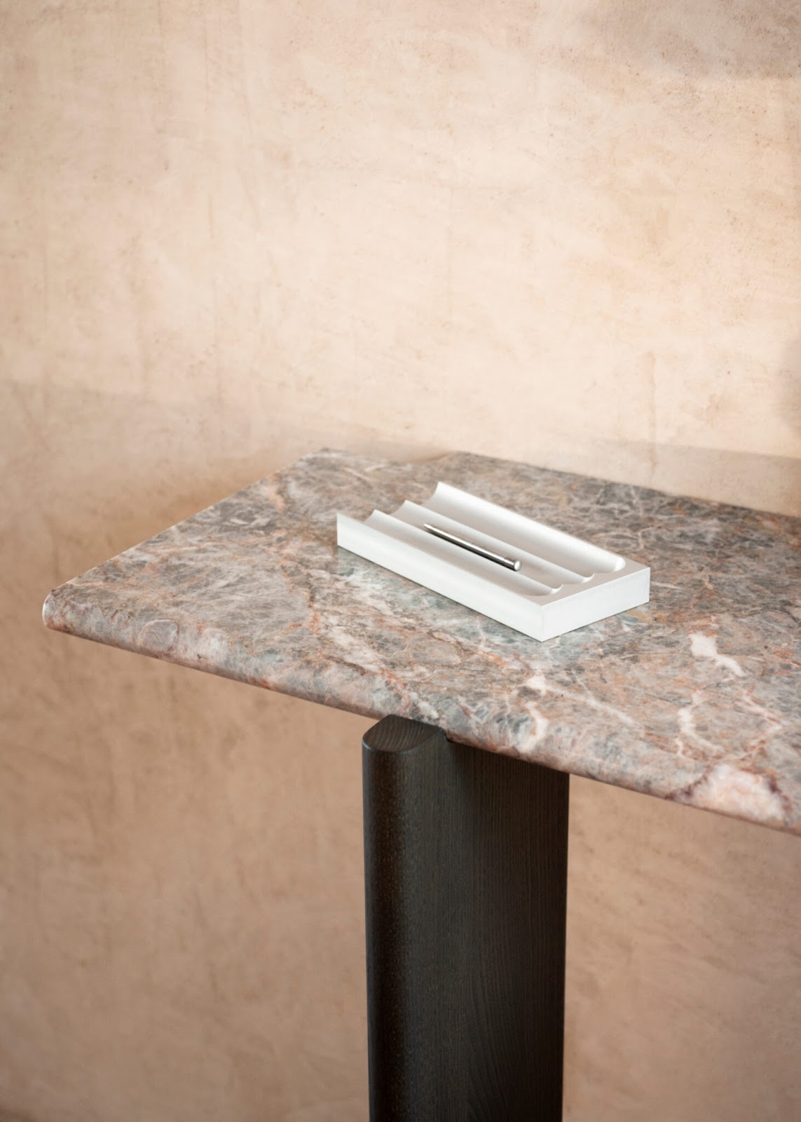Các mẫu gương E Claire, với ba kích thước khác nhau, dễ dàng thích nghi từ phòng khách, phòng ngủ đến các không gian boutique hoặc văn phòng cao cấp. Hai phiên bản console – treo tường và độc lập – tiếp tục mở rộng cuộc đối thoại giữa gỗ và đá, vừa đóng vai trò công năng, vừa như một tác phẩm điêu khắc nhẹ nhàng trong không gian.